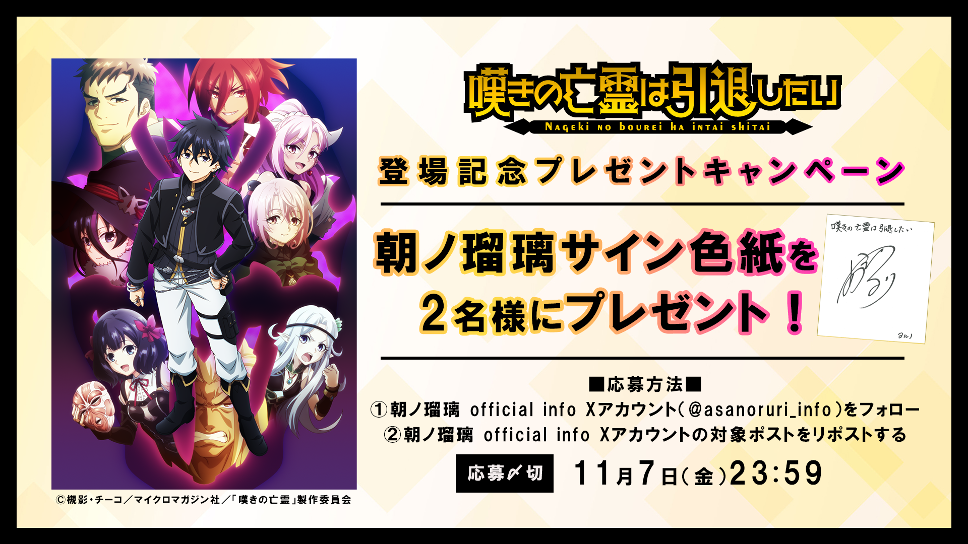 TVアニメ「嘆きの亡霊は引退したい」第18話に朝ノ瑠璃が出演いたします!